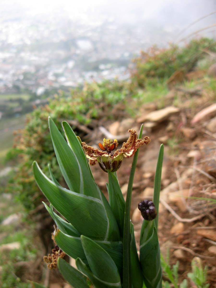 Ferraria crispa flower - also known as the Spider Iris. Its odd shaped, brown, mottled petals are adapted to look like flesh as the main pollinators are various types of fly - inlcuding Flesh Flies (